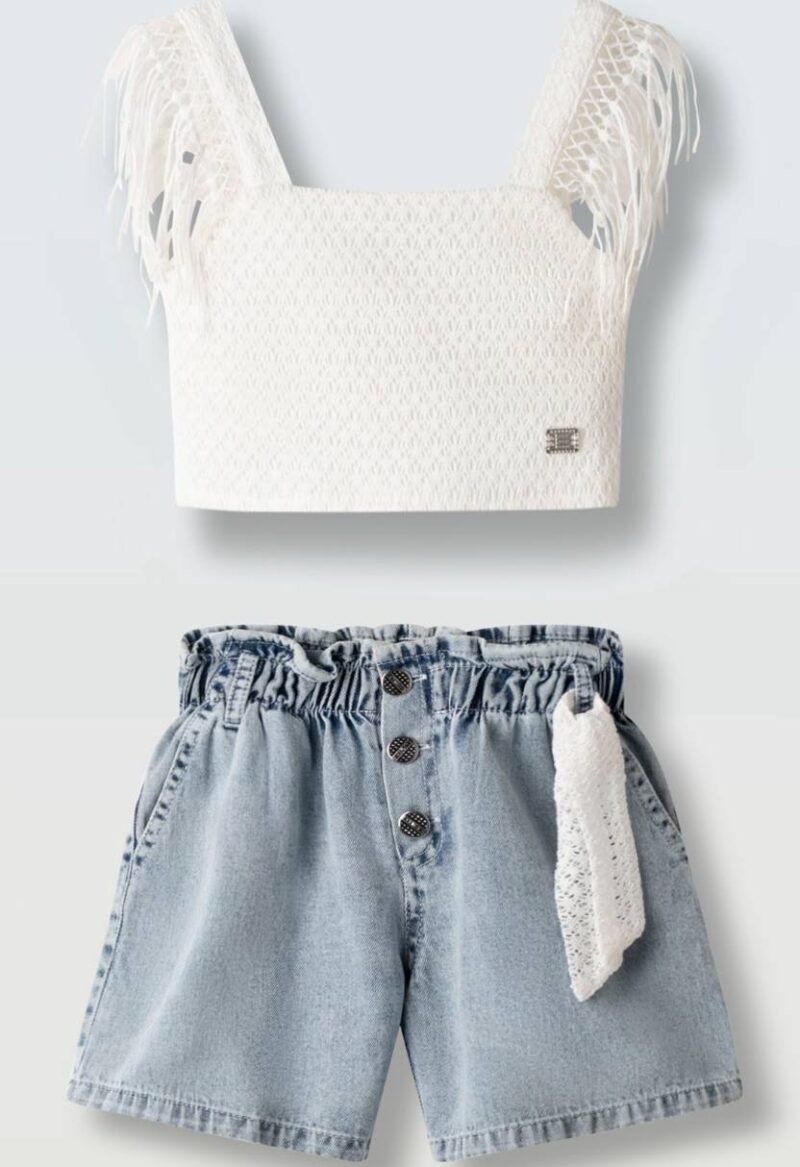 Σετ Ebita με άσπρο πλεκτό τοπ και τζίν σόρτσς Σύνθεση 95%βαμβάκι & 5% ελαστάν Brand Εβίτα Χρώμα Άσπρο, Μπλε Φύλο Κορίτσι Είδος Σετ, Σορτς Εποχή Άνοιξη, Καλοκαίρι Μέγεθος 6 χρονών, 8 χρονών, 10 χρονών, 12 χρονών, 14 χρονών Έτος 2026